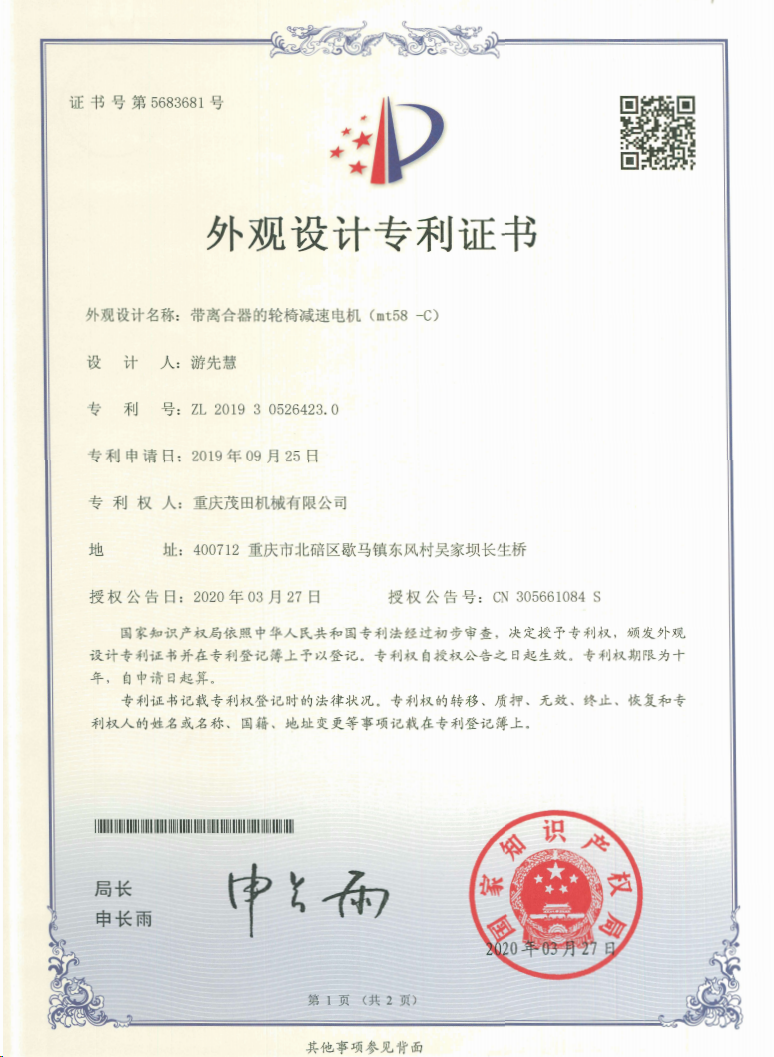 重慶茂田機(jī)械有限公司是國家級小巨人企業(yè)、國家高新技術(shù)企業(yè)、重慶市專精特新企業(yè)、重慶市知識產(chǎn)權(quán)優(yōu)勢企業(yè),致力于現(xiàn)代化山地農(nóng)業(yè)機(jī)械、各類非標(biāo)減速電機(jī)及其控制系統(tǒng)的研發(fā)、生產(chǎn)、銷售。擁有重慶市市級研發(fā)平臺1個(gè) 目前研發(fā)、生產(chǎn)、銷售產(chǎn)品廣泛應(yīng)用于農(nóng)業(yè)機(jī)械、醫(yī)療康復(fù)設(shè)備、交通代步工具、智能搬運(yùn)設(shè)備、以及機(jī)器人動力系統(tǒng)等領(lǐng)域。我們的產(chǎn)品具有完整的自主知識產(chǎn)權(quán),擁有多項(xiàng)專利技術(shù)及“重慶